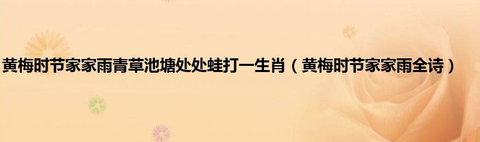 大家好,小常来为大家解答以上问题。黄梅时节家家雨青草池塘处处蛙打一生肖,黄梅时节家家雨全诗很多人还不知道,现在让我们一起来看看吧!