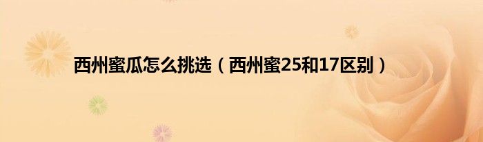 大家好,小科来为大家解答以上问题。西州蜜瓜怎么挑选,西州蜜25和17区别很多人还不知道,现在让我们一起来看看吧!