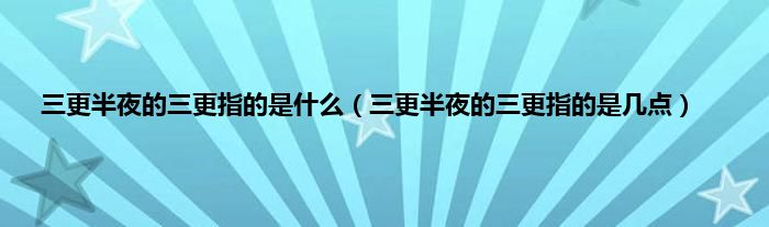 大家好,小科来为大家解答以上问题。三更半夜的三更指的是什么,三更半夜的三更指的是几点很多人还不知道,现在让我们一起来看看吧!