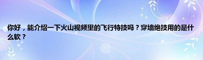 大家好,小常来为大家解答以上问题。你好,能介绍一下火山视频里的飞行特技吗?穿墙绝技用的是什么软?很多人还不知道,现在让我们一起来看看吧!