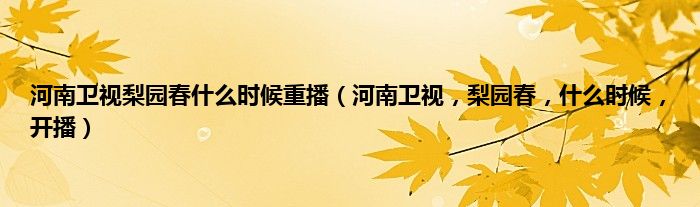 大家好,小常来为大家解答以上问题。河南卫视梨园春什么时候重播,河南卫视,梨园春,什么时候,开播很多人还不知道,现在让我们一起来看看吧!