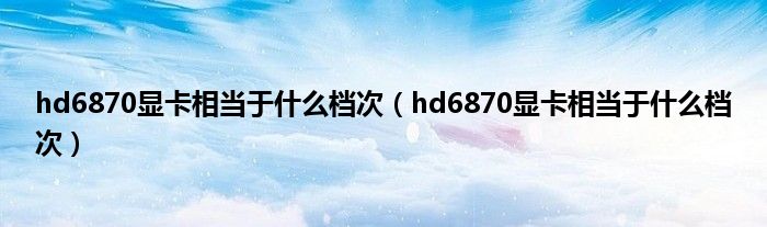大家好,小常来为大家解答以上问题。hd6870显卡相当于什么档次,hd6870显卡相当于什么档次很多人还不知道,现在让我们一起来看看吧!