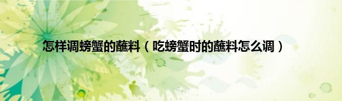 大家好,小科来为大家解答以上问题。怎样调螃蟹的蘸料,吃螃蟹时的蘸料怎么调很多人还不知道,现在让我们一起来看看吧!