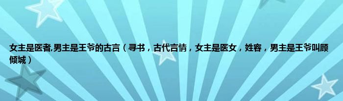 大家好,小常来为大家解答以上问题。女主是医者,男主是王爷的古言,寻书,古代言情,女主是医女,姓容,男主是王爷叫顾倾城很多人还不知道,现在让我们一起来看看吧!