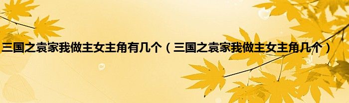 大家好,小常来为大家解答以上问题。三国之袁家我做主女主角有几个,三国之袁家我做主女主角几个很多人还不知道,现在让我们一起来看看吧!