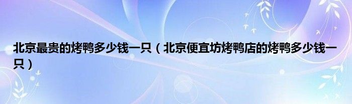 大家好,小常来为大家解答以上问题。北京最贵的烤鸭多少钱一只,北京便宜坊烤鸭店的烤鸭多少钱一只很多人还不知道,现在让我们一起来看看吧!