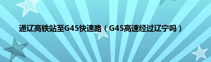 大家好,小常来为大家解答以上问题。通辽高铁站至G45快速路,G45高速经过辽宁吗很多人还不知道,现在让我们一起来看看吧!