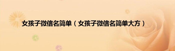 大家好,小常来为大家解答以上问题。女孩子微信名简单,女孩子微信名简单大方很多人还不知道,现在让我们一起来看看吧!