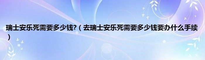 大家好,小常来为大家解答以上问题。瑞士安乐死需要多少钱?,去瑞士安乐死需要多少钱要办什么手续很多人还不知道,现在让我们一起来看看吧!