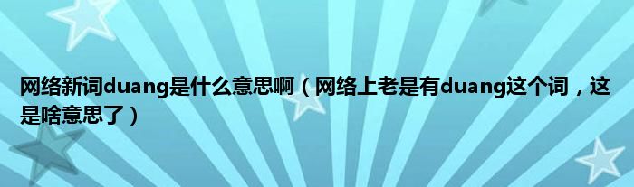 大家好,小常来为大家解答以上问题。网络新词duang是什么意思啊,网络上老是有duang这个词,这是啥意思了很多人还不知道,现在让我们一起来看看吧!