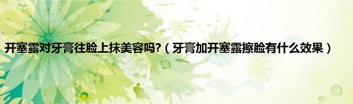 大家好,小科来为大家解答以上问题。开塞露对牙膏往脸上抹美容吗?,牙膏加开塞露擦脸有什么效果很多人还不知道,现在让我们一起来看看吧!