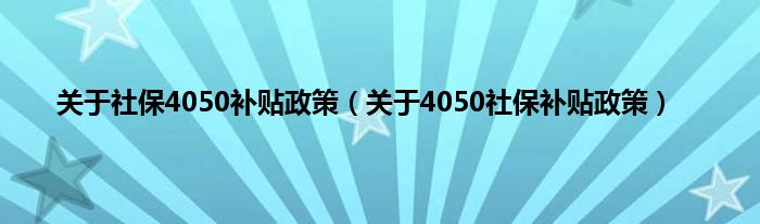 2、随着我国社保制度的不断完善,大部分人都参加了社保,并且国家对于经济困难的人员还推出了社保优惠政策,4050社保补贴政策就是其中之一,符合4050补贴政策条件的参保人员可以享受一定的社保补贴,目前有部分人还不太清楚4050社保补贴政策究竟是什么,下面我们就一起来详细了解一下。