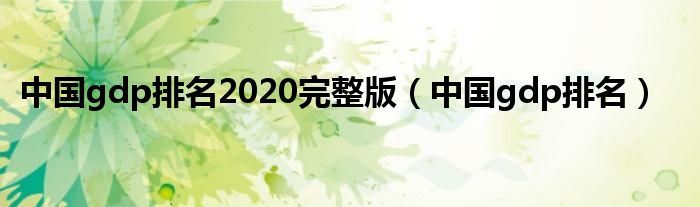 大家好,小常来为大家解答以上问题。中国gdp排名2020完整版,中国gdp排名很多人还不知道,现在让我们一起来看看吧!