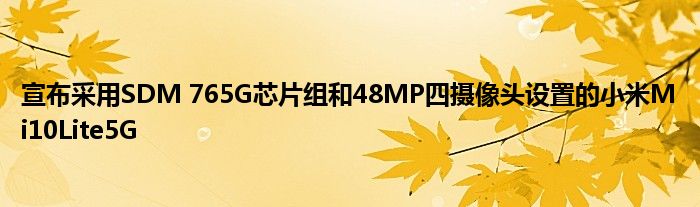 小米10 Lite 5G具有6.57英寸AMOLED显示屏,具有1080 x 2340像素的Full HD +分辨率。在引擎盖下,它由高通Snapdragon 765G芯片组提供燃料。手机将提供64GB或128GB的存储选项。