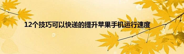 现在大家使用手机的频率越来越频繁,手机也为我们提供了许多的便利,今天小编也来说一下这个12个技巧可以快递的提升苹果手机运行速度文章,这个操作其实不复杂,接下来就给大家介绍一下12个技巧可以快递的提升苹果手机运行速度来看看吧: