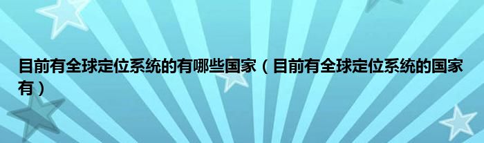 目前有全球定位系统的有哪些国家(目前有全球定位系统的国家有)