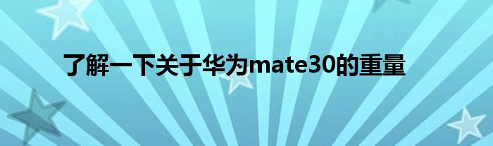 现在大家使用手机的频率越来越频繁,手机也为我们提供了许多的便利,今天小编也来说一下这个了解一下关于华为mate30的重量相关的文章,这个操作其实不复杂,接下来就给大家介绍一下了解一下关于华为mate30的重量,一起来看看吧: