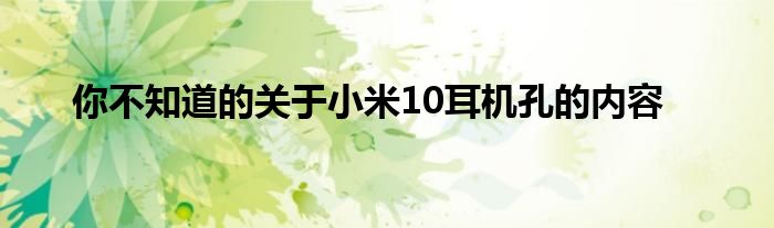 现在大家使用手机的频率越来越频繁,手机也为我们提供了许多的便利,今天小编也来说一下这个你不知道的关于小米10耳机孔的内容相关的文章,这个操作其实不复杂,接下来就给大家介绍一下你不知道的关于小米10耳机孔的内容,一起来看看吧: