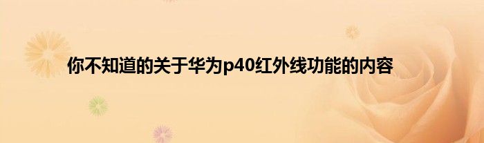现在大家使用手机的频率越来越频繁,手机也为我们提供了许多的便利,今天小编也来说一下这个你不知道的关于华为p40红外线功能的内容相关的文章,这个操作其实不复杂,接下来就给大家介绍一下你不知道的关于华为p40红外线功能的内容,一起来看看吧: