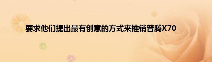 最佳答案普腾(Proton)为大学生组织了一场全国性的比赛,要求他们提出最有创意的方式来推销普腾X70。这家汽车制造商表示,它正在寻求寻找具有领导才能的学生来领导有意义的SUV营销活动。激发挑战的智力”竞赛的目的不仅在于发现有创意的年轻人如何提出汽车主题的营销理念,还将探索他们在大规模营销活动...