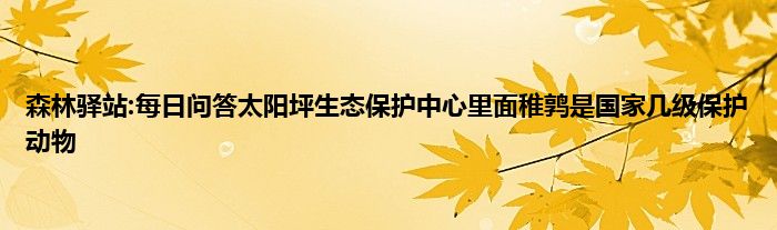 以上就是森林驿站:每日问答太阳坪生态保护中心里面稚鹑是国家几级保护动物的推荐,相信通过森林驿站:每日问答太阳坪生态保护中心里面稚鹑是国家几级保护动物这篇文章能帮到你,也欢迎对游戏很感兴趣小伙伴们一起来探讨。