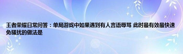 以上就是王者荣耀日常问答:单局游戏中,如果遇到有人言语辱骂,此时最有效、最快速免骚扰的做法是的推荐,相信通过王者荣耀日常问答:单局游戏中,如果遇到有人言语辱骂,此时最有效、最快速免骚扰的做法是这篇文章能帮到你,也欢迎对游戏很感兴趣小伙伴们一起来探讨。