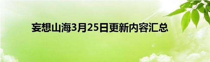 最近玩妄想山海的玩家都在问,游戏里面的3月25日更新了什么?妄想山海手游今日不停服更新后,将开启水神降临活动,参与即可抽取时装和材料。小编我特意整理了相关的资讯,下面就是带来的本周更新的主要内容了,一起来看看吧!