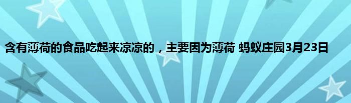薄荷为什么很凉,是因为薄荷里面有什么吃起来很凉吗?含有薄荷成分的食品吃起来凉凉的,主要因为薄荷成分?这是支付宝蚂蚁庄园小课堂今日先行公布的3月23日问题,答对即可获得一份180g饲料,那么接下来就让我们一起了解一下正确答案吧!