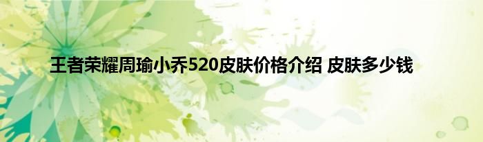 王者荣耀周瑜小乔520皮肤价格介绍皮肤多少钱
