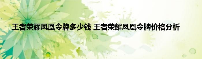 王者荣耀凤凰令牌多少钱 王者荣耀凤凰令牌价格分析