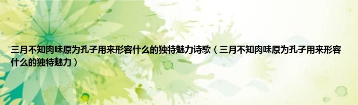 大家好,小科来为大家解答以上问题。三月不知肉味原为孔子用来形容什么的独特魅力诗歌,三月不知肉味原为孔子用来形容什么的独特魅力很多人还不知道,现在让我们一起来看看吧!