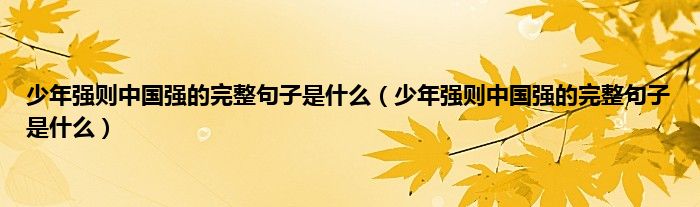 1、 完整的句子是:少年智则国强,少年富则国强,少年强则国强,少年独立则国家独立,少年自由则国家自由,少年进步则国家进步,少年优于欧洲,少年优于地球,国家优于地球。