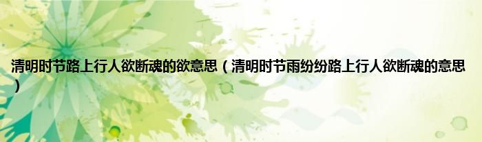 大家好,小科来为大家解答以上问题。清明时节路上行人欲断魂的欲意思,清明时节雨纷纷路上行人欲断魂的意思很多人还不知道,现在让我们一起来看看吧!