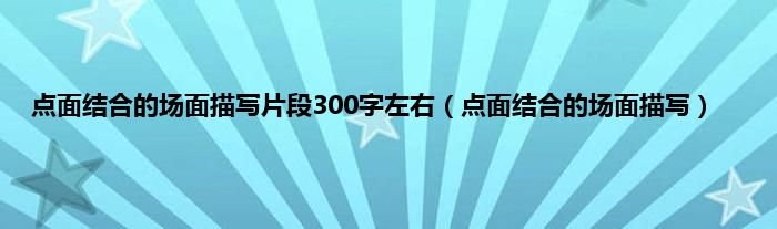 大家好,小科来为大家解答以上问题。点面结合的场面描写片段300字左右,点面结合的场面描写很多人还不知道,现在让我们一起来看看吧!