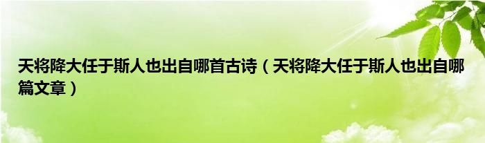 大家好,小科来为大家解答以上问题。天将降大任于斯人也出自哪首古诗,天将降大任于斯人也出自哪篇文章很多人还不知道,现在让我们一起来看看吧!