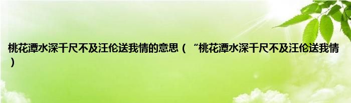 大家好,小科来为大家解答以上问题。桃花潭水深千尺不及汪伦送我情的意思,“桃花潭水深千尺不及汪伦送我情很多人还不知道,现在让我们一起来看看吧!