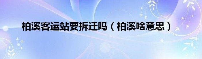大家好,小科来为大家解答以上问题。柏溪客运站要拆迁吗,柏溪啥意思很多人还不知道,现在让我们一起来看看吧!