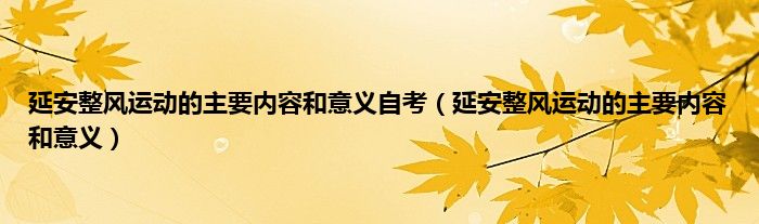 大家好,小科来为大家解答以上问题。延安整风运动的主要内容和意义自考,延安整风运动的主要内容和意义很多人还不知道,现在让我们一起来看看吧!
