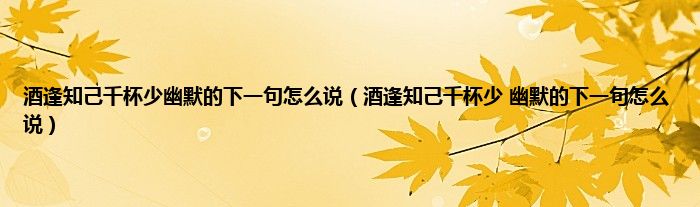大家好,小科来为大家解答以上问题。酒逢知己千杯少幽默的下一句怎么说,酒逢知己千杯少 幽默的下一句怎么说很多人还不知道,现在让我们一起来看看吧!
