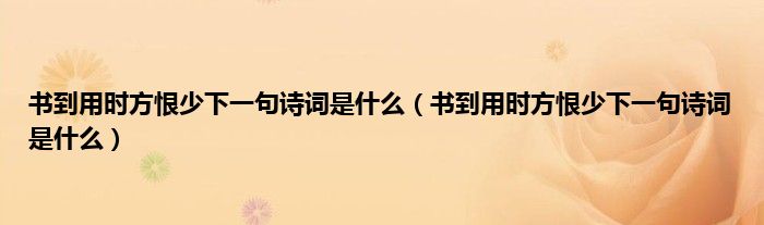 大家好,小科来为大家解答以上问题。书到用时方恨少下一句诗词是什么,书到用时方恨少下一句诗词是什么很多人还不知道,现在让我们一起来看看吧!