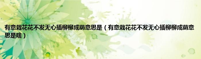 大家好,小科来为大家解答以上问题。有意栽花花不发无心插柳柳成荫意思是,有意栽花花不发无心插柳柳成荫意思是啥很多人还不知道,现在让我们一起来看看吧!