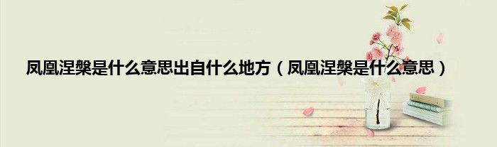 大家好,小科来为大家解答以上问题。凤凰涅槃是什么意思出自什么地方,凤凰涅槃是什么意思很多人还不知道,现在让我们一起来看看吧!