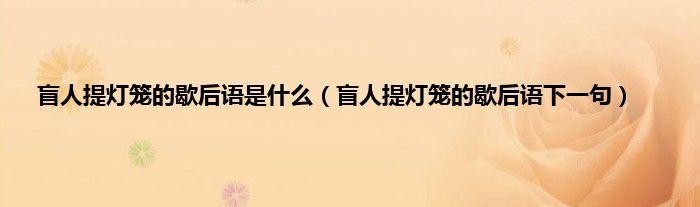 大家好,小科来为大家解答以上问题。盲人提灯笼的歇后语是什么,盲人提灯笼的歇后语下一句很多人还不知道,现在让我们一起来看看吧!