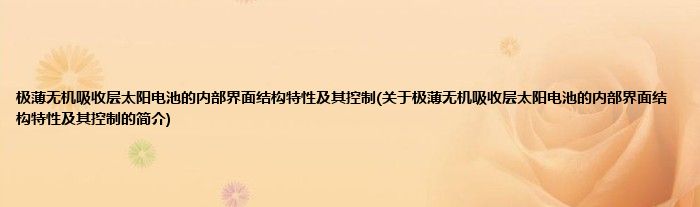 大家好,极薄无机吸收层太阳电池的内部界面结构特性及其控制,关于极薄无机吸收层太阳电池的内部界面结构特性及其控制的简介很多人还不知道,现在让我们一起来看看吧!