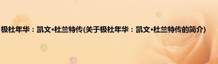 本文关于极杜年华:凯文·杜兰特传的简介就讲解完毕,希望对大家有所帮助。