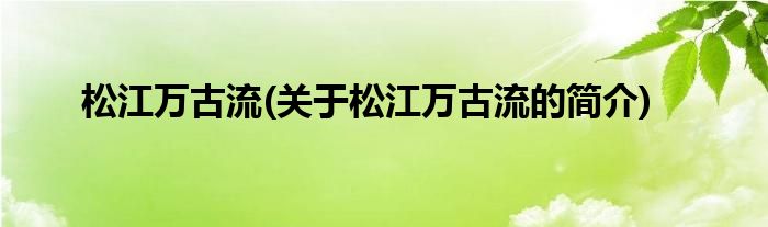 大家好,松江万古流,关于松江万古流的简介很多人还不知道,现在让我们一起来看看吧!