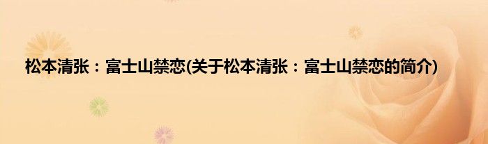 本文关于松本清张:富士山禁恋的简介就讲解完毕,希望对大家有所帮助。