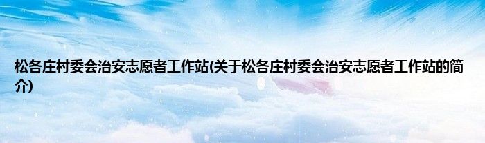 本文关于松各庄村委会治安志愿者工作站的简介就讲解完毕,希望对大家有所帮助。