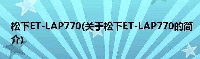 大家好,松下ET-LAP770,关于松下ET-LAP770的简介很多人还不知道,现在让我们一起来看看吧!