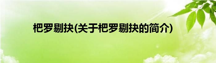 大家好,杷罗剔抉,关于杷罗剔抉的简介很多人还不知道,现在让我们一起来看看吧!